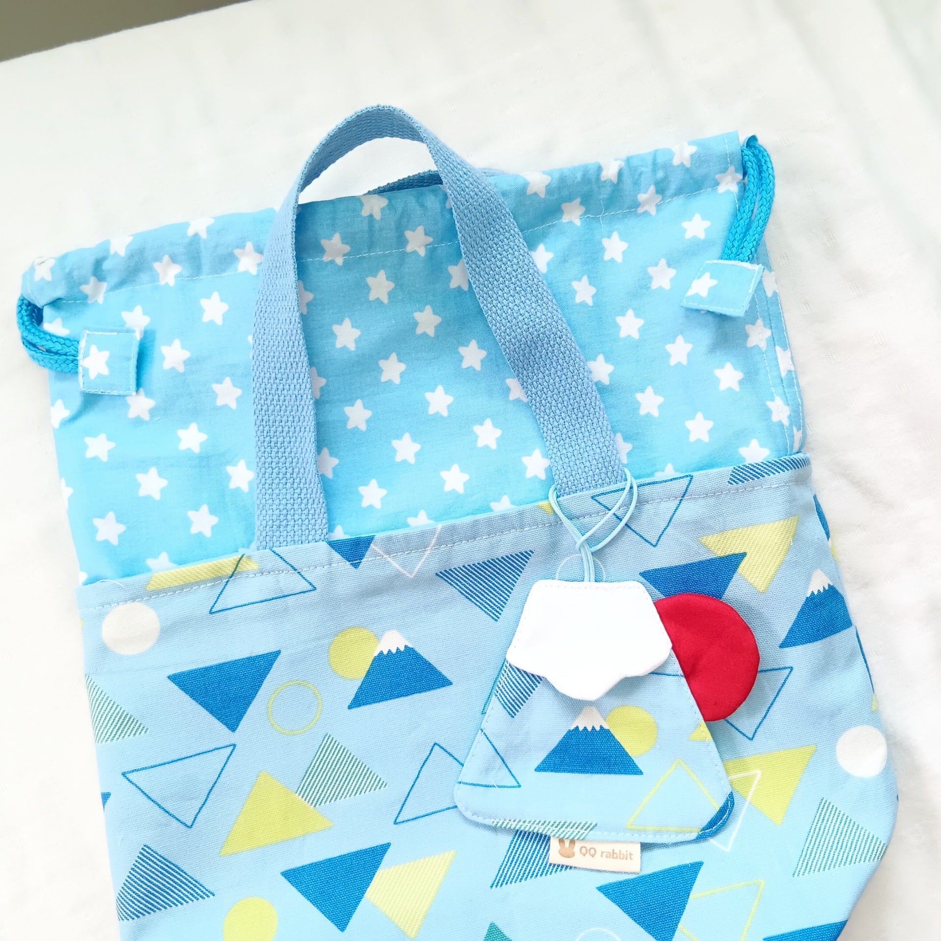 附姓名吊牌。幾何富士山。幼兒園小學適用 可機洗束口便當袋 餐袋 (副本)