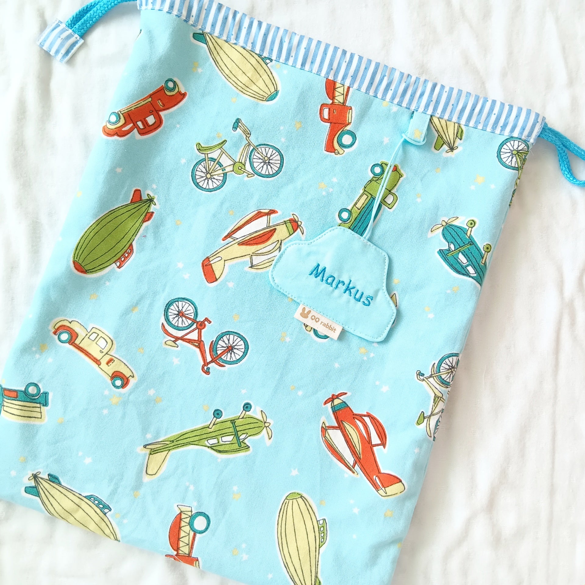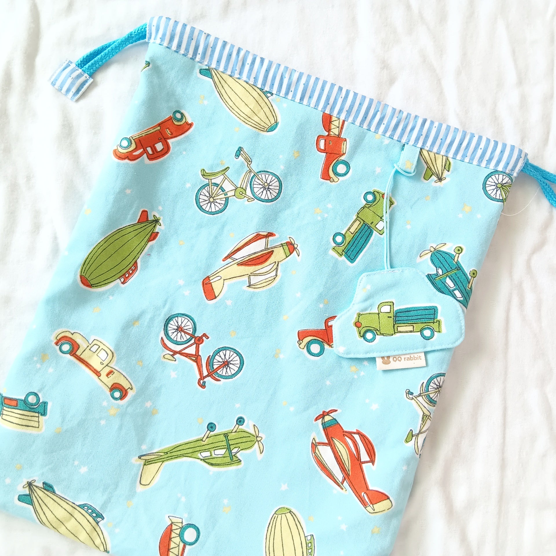 附姓名吊牌。車車天堂。束口袋 尿布袋 衣物袋