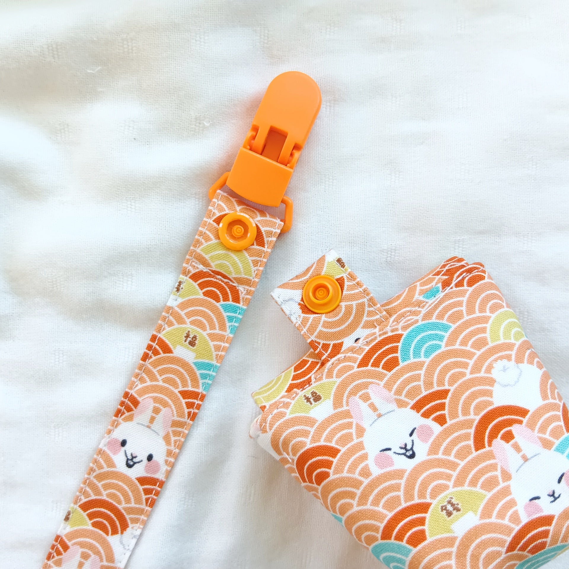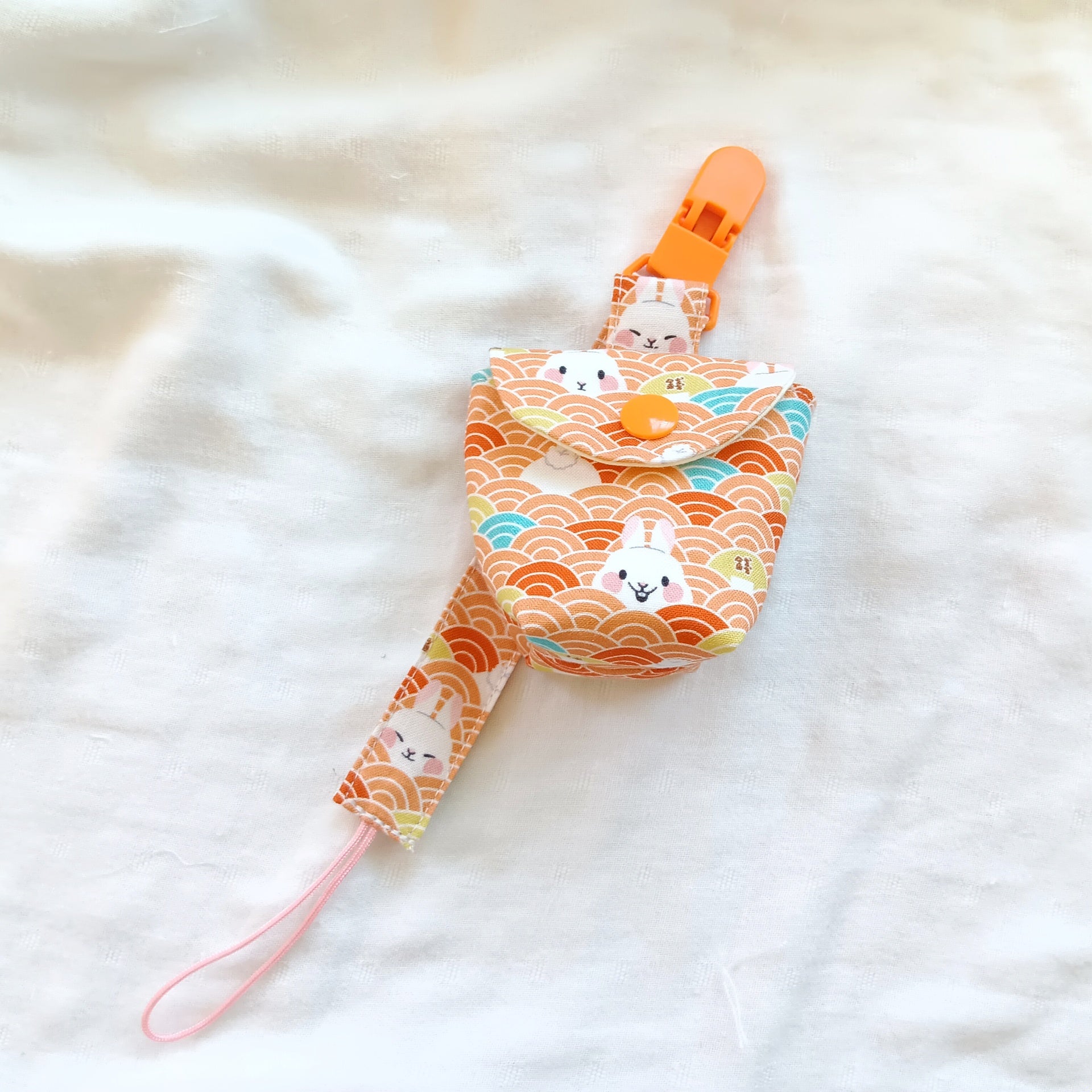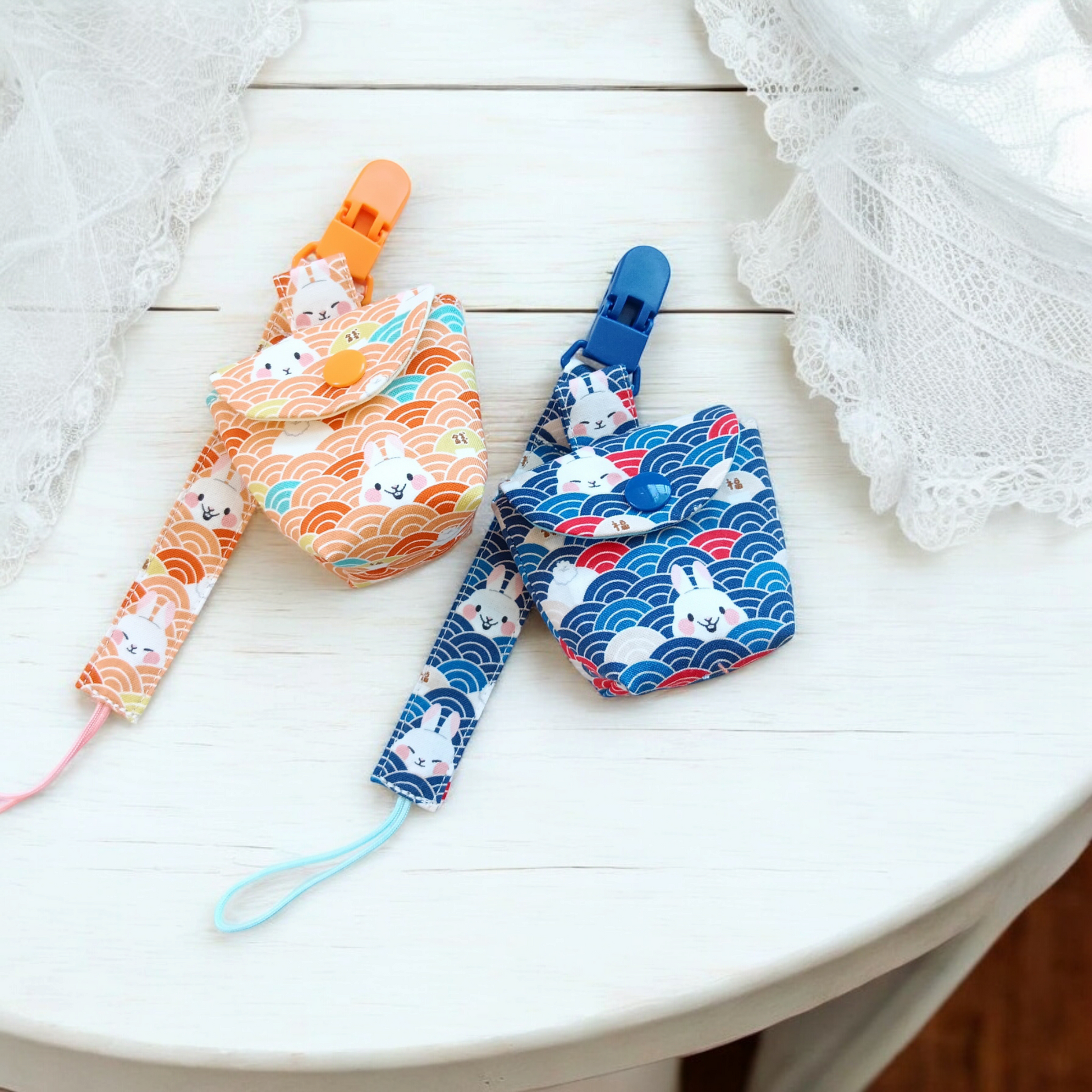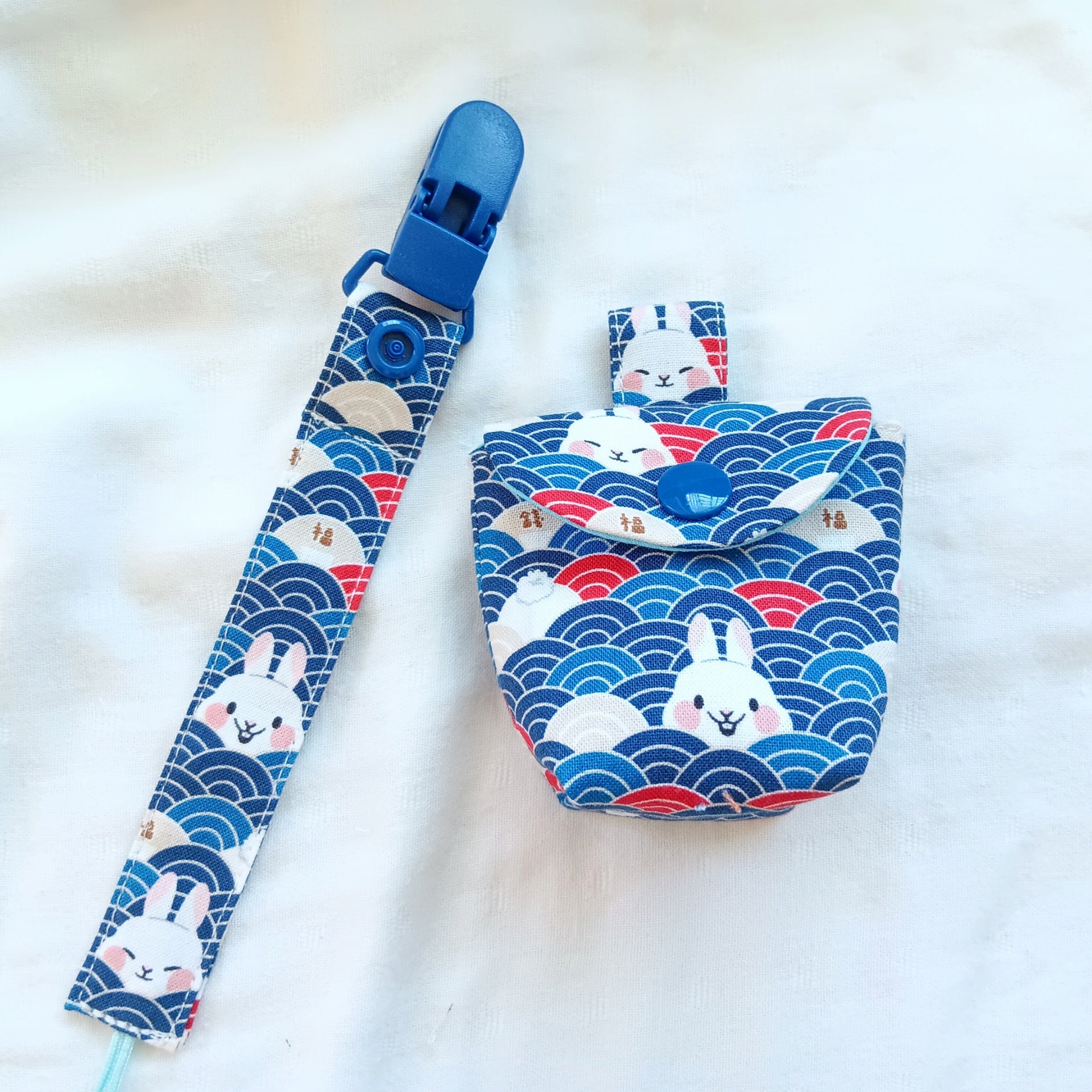 青海波兔兔-2色可選。奶嘴袋+奶嘴鏈 (可繡名字)