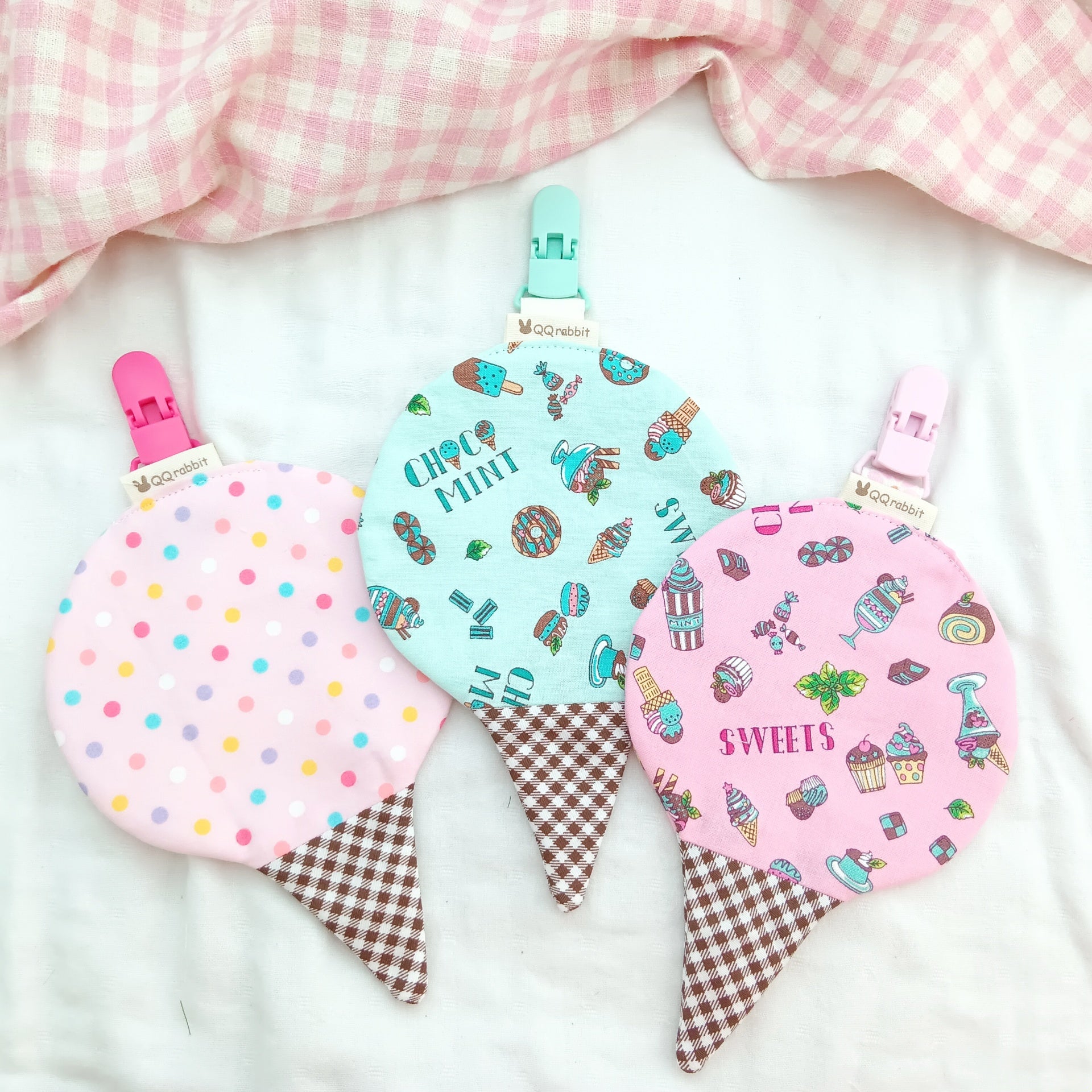 4款可選。甜筒造型雙面純棉手帕 / 附夾手帕 (可繡名字)